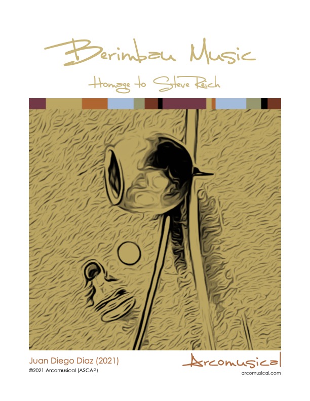 “Berimbau Music for five tuned berimbaus, is an homage to American composer Steve Reich, who in 1972 composed “Clapping Music,” inspired by a West African bell pattern. In this piece, one performer claps the basic pattern while the second performer claps the same pattern, shifting its starting point systematically in the same direction along the time cycle until it comes full circle, finding itself in unison with the first performer once again.